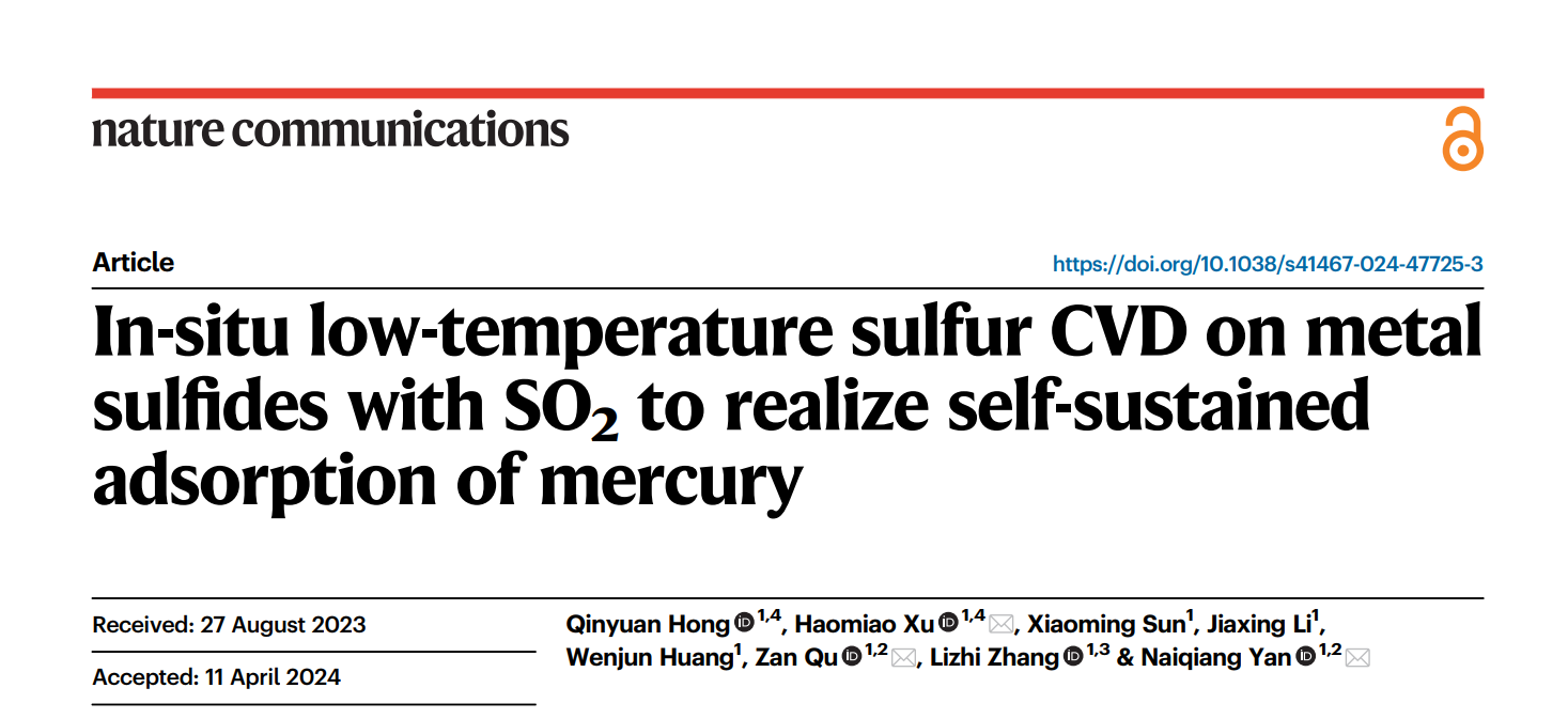 Air Pollution Control Group's Groundbreaking Study in Nature Communications In-situ Sulfur CVD with SO2 for Industrial Flue Gas Mercury Removal