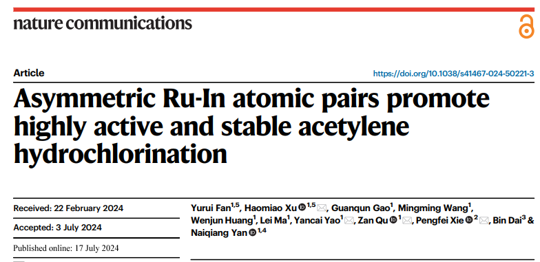 Distinguished Professor Zhang Lizhi and Associate Professor Yao Yancai's Groundbreaking Study in Nature Communications Manipulating the Spin Polarization of Electrocatalysts within Pair Sites for Nitrate Wastewater Treatment