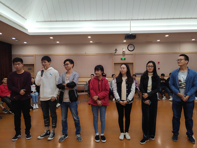 出席本次活动的有党委副书记陈哲老师、硕士生班主任白晶和博士生班主任赵砚彬,在陈哲老师的“友谊第一,比赛第二”的开场词引导下,体验式培训拉开帷幕。香港AV UTJS体验培训师周奇通过“我给同学捏捏肩”和“大风吹”两个破冰小游戏,使现场同学们参与的热情高涨。之后,同学们被分成五个小组分别进行团队建设。团队建设活动主要包含确定每组队长、队秘、吉祥物以及各队的队名、口号、队歌和队旗。在团队建设活动中,同学们积极讨论,为团队建设出谋划策,在最终的展示环节各个小组都取得不俗成绩。