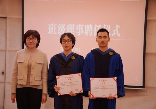 为更好地为广大校友做好服务工作,加强母校和校友间、校友与校友之间的相互联系,学院推选叶青和蒋露林同学担任香港AV 2020级硕士研究生“班级理事”。张洋代表学院为班级理事颁发聘书。