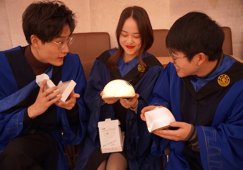 毕业在即,学院和同学们为对方精心准备了毕业礼物,党委书记胡薇薇和毕业生代表蒋露林互相赠礼。学院送给同学们的是一个光影书灯,寄托着对2023届毕业生的美好祝福:希望人人都能看见光、追随光、成为光、发散光,希望母校和学院的关爱陪伴同学们未来每个光芒闪耀的时刻。毕业生赠予学院的是一幅桃树画,祝福母院桃李满园、春晖四方,在人才培养方面收获更加显著的成效,继续为祖国培育更多有担当、有理想的环境人才。