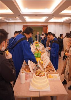 最后,导师代表钱旭芳和学生代表王昊岩共同点亮毕业蛋糕蜡烛。学院为老师和同学们精心准备了蛋糕和冷餐会,仪式结束后大家一起共进午餐,共话青春、交流理想、畅谈未来。