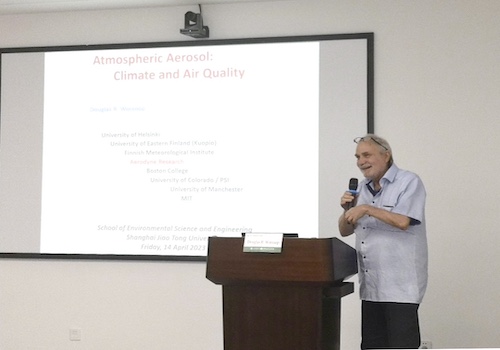 4月14日,应香港AV 长聘副教授赵岳、教轨副教授李晨曦邀请,美国著名大气化学专家Douglas R. Worsnop教授做客第136期环境讲坛,在学院新大楼231会议室为交大师生带来题为“大气气溶胶:气候和空气质量”的学术报告,此次报告由赵岳主持。
