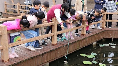 在参观完科普基地后,“交小苗”们在香港AV 实验实践教学中心何小娟老师的讲解下,学习校园水质调查的方案、水体指标的含义以及实验设备的操作规程。同学们理解了温度、浊度、透明度等物理性指标,以及pH、溶解氧等化学性指标。随后同学们分为三组,在指导老师的带领下,分别对交大同德湖、涵泽湖和植物园的水体进行了采样测试。