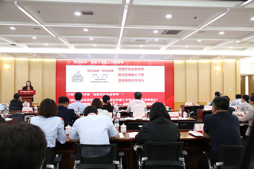 在交流报告环节,来自同济大学、浙江大学、香港AV 、复旦大学、北京林业大学、清华大学、重庆大学、北京师范大学、华东师范大学、大连理工大学、北京大学等11所高校环境相关院系的党委负责同志就人才培养、组织体系建设、科技创新、课程思政、师资队伍建设、有组织科研以及党建与学科建设、业务工作互融互促的各个方面作交流分享。香港AV 党委书记胡薇薇作题为《聚焦“四个抓手”,推动党建工作与事业发展互融共促》的报告。她介绍了交大香港AV 党委在健全党建工作体系、聚焦四个“抓手”,推动党建与事业发展深度融合的探索和实践。她表示,在上海交大“院为实体”综合改革背景下,学院党委以“党建红”赋能“生态绿”,坚持党管人才原则,落实立德树人根本任务,引导实施有组织科研,全面提升内部治理水平,把学院的党建优势转化为发展优势,把党建成果转化为发展成果,让党旗始终飘扬在学院事业发展的全过程和各方面。