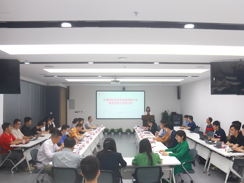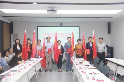 胡薇薇和曹心德为洱海国家站党支部、环境工程第一党支部、环境工程第二党支部、环境科学第一党支部、环境科学第二党支部、环境管理党支部、行政与实验室党支部授旗,并为党支部书记颁发任职证书。