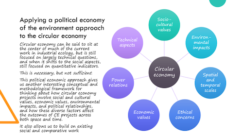 发展循环经济是提高经济效益,实现可持续发展路径的重要举措。当前循环经济理论逐渐趋于成熟与统一,不同视角下循环经济的实现路径存在差异,定性、定量比较不同循环经济实现路径的效率与可行性,对于各国因地制宜实现循环经济的多元化实践具有重要意义。在本次报告中,Matthew Archer在先前关于企业可持续性和可持续金融方面的社会研究的基础上,梳理了当前循环经济研究与定义的发展,分享了环境政治经济学研究方法在循环经济中的应用前景,解析了循环经济的多元化发展途径,强调了未来循环经济研究的社会潜力和比较潜力,介绍了一种基于调查、访谈和民族志等方式的定性研究的比较分析方法,有助于建立并扩展国内外现有的工业生态学研究。
