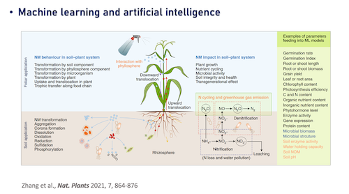 人工纳米材料的环境行为及其风险评估是实现纳米科技可持续发展、保障生态环境健康的重要前提。纳米材料具有较高的活性,在进入环境后,伴随发生的物理、化学、生物等转化过程会导致其原有的物化性质发生改变,这些过程共同决定了纳米材料的生物学效应。因此,了解纳米材料环境及生物转化过程是深入解析其生物学效应的前提。随着纳米材料的广泛应用,纳米肥料和纳米农药逐渐引起人们的关注。在本次报告中,张鹏教授主要就纳米材料的环境行为及其对农业应用的影响做了详细的介绍,涵盖纳米材料的毒性机理、纳米材料穿破血脑屏障的环境过程及形态转化等。在所得研究成果的基础上,张鹏教授团队还引入了机械学习和人工智能的概念,以期实现农业环境大背景下纳米材料污染状况的定量预测。