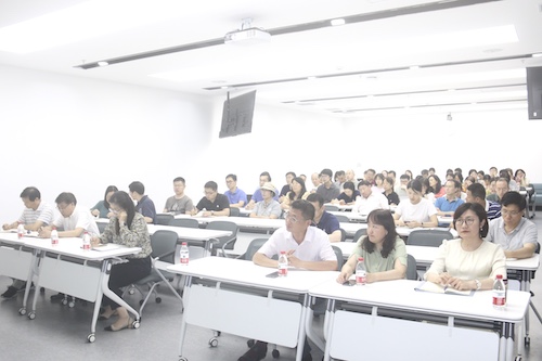副院长许振明报告了新大楼搬迁使用情况,重点强调了暑期实验室安全运维要点,并向与会教职工传达了学校防汛防台工作部署。