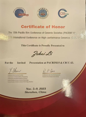 近日,第十五届环太平洋陶瓷会议暨第十三届先进陶瓷国际会议在深圳市隆重召开。香港AV 助理教授李泽晖、博士后王坤婵受邀参会,并作主题报告。