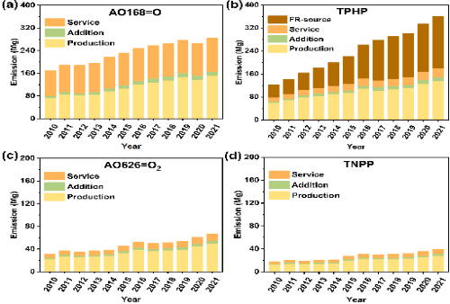 建立自下而上的模型方法将排放量与环境污染联系起来,可帮助人们了解OPAs的贡献。目前关于OPEs的排放清单和环境归趋模型的研究未能考虑OPAs的间接排放,导致对OPEs排放的低估。此外过去研究仅关注大气排放途径,没有考虑地表水和土壤排放。引入的不确定性阻碍了对此类化学品的生态和人类健康风险评估。针对上述问题,本研究选择中国这一塑料和化学品生产大国,建立了与中国高产OPAs对应的OPEs的网格化排放清单,使用我国多介质环境归趋模型 (SESAMe v3.4,0.5°)来模拟中国环境中OPAs的多介质分配、浓度和持久性。本研究首次量化了OPAs对中国OPEs环境污染贡献,结论有助于为此类化学品使用管理和新污染物风险防控提供理论依据。