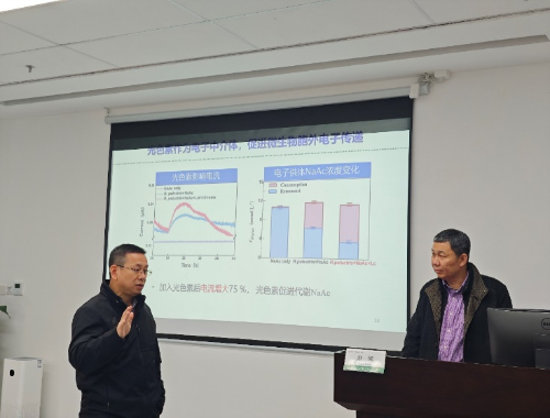 在交流环节,与会师生针对“核黄素光解产物的电子穿梭能力”“微生物矿物界面电子传输动力学”“污染物降解过程各因素贡献定量方法”“铁呼吸在环境化学和地学中的意义”等问题与赵峰展开深入交流。