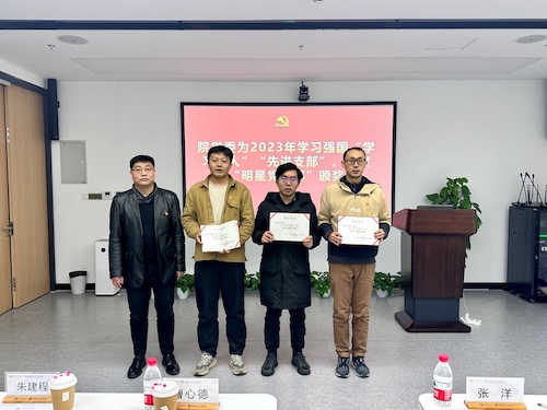 朱建程、曹心德分别为香港AV 2023年度学习强国“学习达人”“先进支部”、年度“明星党支部”代表颁发荣誉证书。