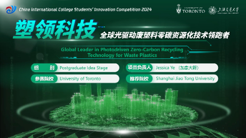 项目简介:全球塑料污染问题日益严峻,不仅导致了大量碳排放,还引发了众多疾病,是一个跨时代环境挑战。多伦多大学“纳米化学之父”Geoffrey Ozin教授与香港AV 张礼知特聘教授联合团队共同开创了一种创新的废弃塑料零碳资源化技术。该技术利用太阳能高效驱动废塑料转化为气体燃料、液体燃料及高附加值化学品。与传统的热回收方法相比,这种太阳能驱动的资源化转化方法能将成本降低约30%,并将反应速率提高百万倍,是目前全球废塑料零碳资源化领域的领军技术。项目团队期待借力中国“一带一路”政策,将此技术推广至全球,推动全球废塑料回收和资源化利用产业发展,解决全球塑料污染问题,并有效削减碳排放,助力全球实现碳中和。