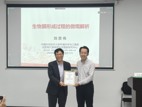 近日,应香港AV 特聘教授戴家银、长聘教轨副教授盛南邀请,中国科学技术大学环境科学与工程系和合肥微尺度物质科学国家研究中心教授刘贤伟做客192期环境讲坛,在绿色环境楼200会议室与交大师生进行学术交流,带来题为“生物膜形成过程的微观解析”的精彩报告。此次报告由盛南主持。