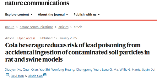 近日,香港AV 曹心德教授团队在自然•通讯《Nat. Commun.》杂志在线发表了题为“Cola beverage reduces risk of lead poisoning from accidental ingestion of contaminated soil particles in rat and swine models”的研究成果(//www.nature.com/articles/s41467-025-56138-9)。经口摄入污染土壤颗粒是成人和儿童铅暴露的主要途径之一,如何降低该途径导致的铅中毒风险一直是国际社会关注的焦点。该研究基于猪和小鼠的动物模型提出了一种简单有效的策略,即通过饮用可乐饮料可显著降低摄入污染土壤颗粒后的血铅水平。论文第一作者为续晓云副研究员和博士研究生钱泉,通讯作者为曹心德教授和戴家银教授。论文第一作者及第一通讯单位均为香港AV 。