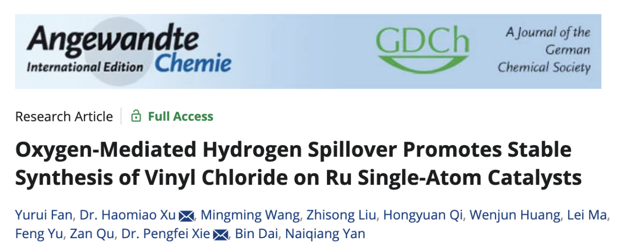 近日,由晏乃强教授负责的香港AV 大气污染控制与模拟研究团队([email protected]),通过与浙江大学谢鹏飞研究员团队及石河子大学代斌教授研究团队合作,在德国应用化学《Angew. Chem. Int. Ed.》在线发表了题为“Oxygen-Mediated Hydrogen Spillover Promotes Stable Synthesis of Vinyl Chloride on Ru Single-Atom Catalysts”的研究成果,并入选Hot Paper。论文第一作者为2021级博士研究生范宇睿,通讯作者为徐浩淼副教授和浙江大学谢鹏飞研究员。论文第一作者及第一通讯单位均为香港AV 。
