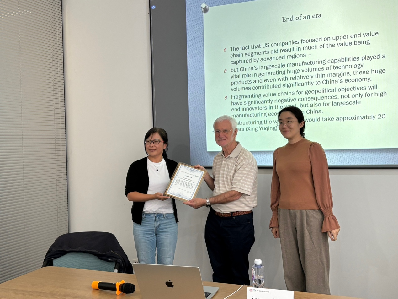 Seamus Grimes是爱尔兰戈尔大学(University of Galway)经济地理学荣誉教授。他在华东师范大学担任访问研究教授长达15年,期间定期赴华访问并调研在华跨国高科技企业。2018年,他与孙玉涛合作出版专著《China and Global Value Chains: Globalization and the Information and Communications Technology Sector》。他的研究聚焦中国在高科技全球价值链中的融入路径,重点关注半导体、化工与医药等领域,发表了多篇具有国际影响力的学术论文。