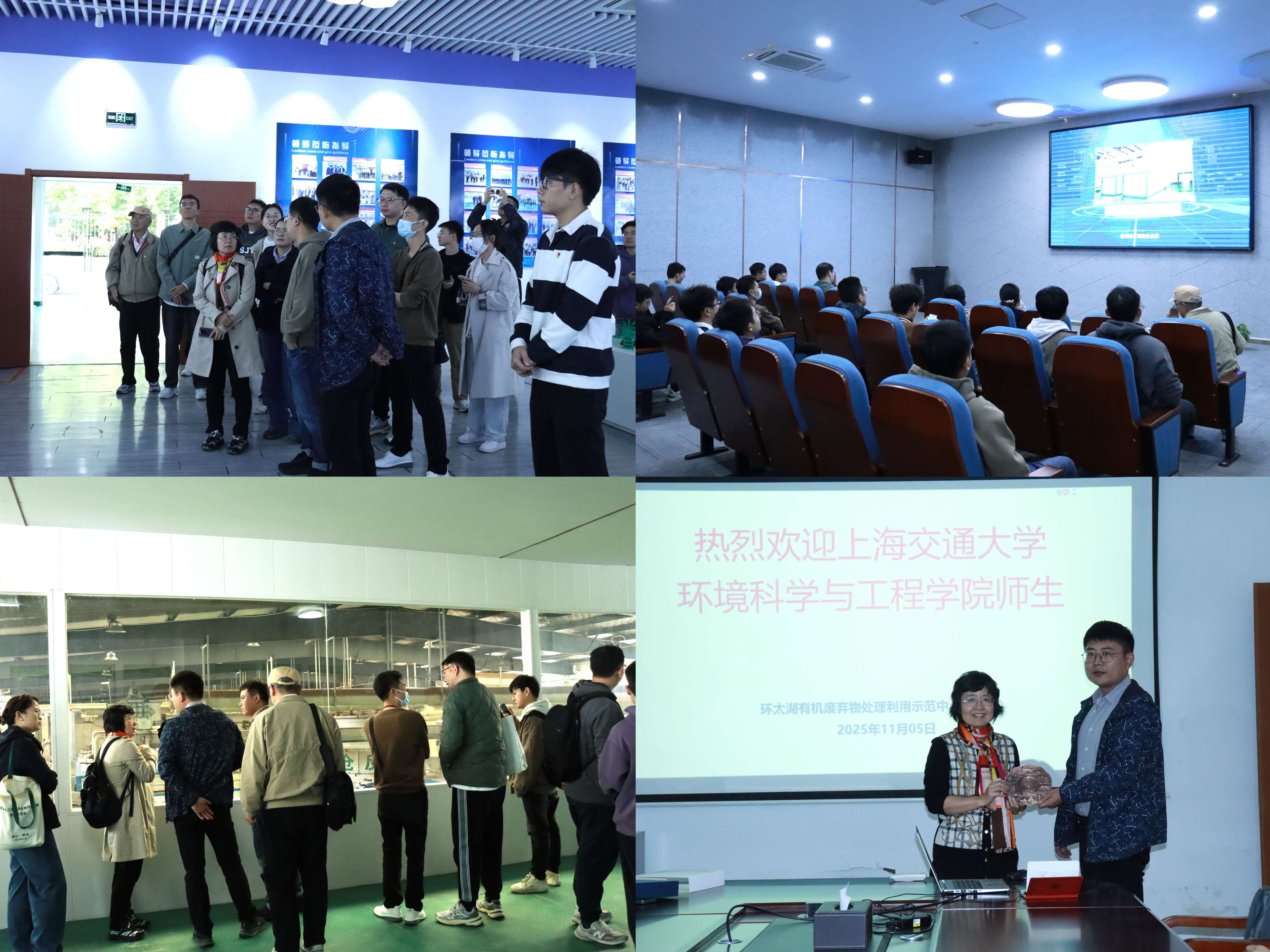 师生一行深入参观了环太湖有机废物处理利用示范中心的展厅与处理车间。围绕有机废弃物的前端分类、过程减量与末端资源化等核心环节,系统了解集成“连续生物干化+好氧发酵”等技术路线的高效运行模式。在交流中,双方重点探讨了技术成果“从实验室到产业”的关键堵点、政策需求与创新商业模式。该示范中心不仅是解决本地有机废物难题的样板,更是服务长三角生态绿色一体化发展战略的重要支点,为构建环太湖地区有机废物资源化利用协同体系提供宝贵实践,对于打通区域“绿水青山”向“金山银山”的转化路径,具有重要的示范和推动作用。