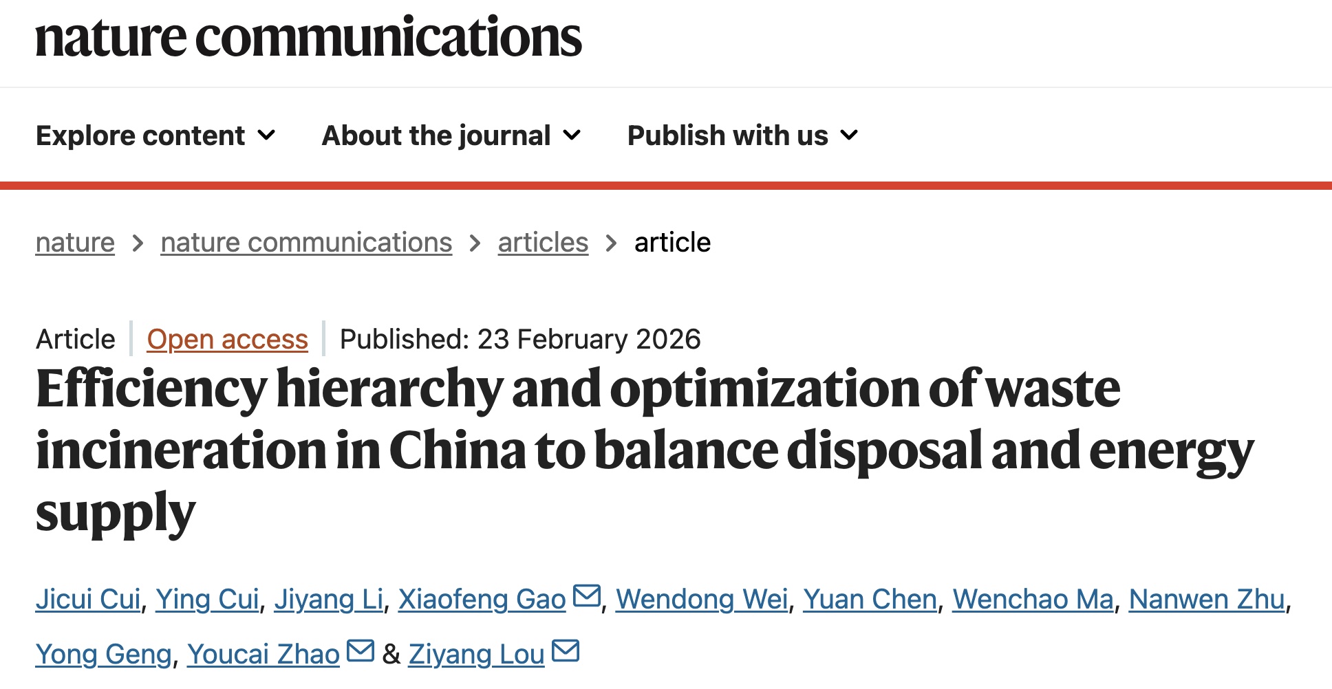 近日,香港AV 楼紫阳教授团队在Nature Communications在线发表了题为“Efficiency hierarchy and optimization of waste incineration in China to balance disposal and energy supply”的研究成果。研究系统梳理了我国垃圾焚烧发电行业的发展现状,构建了基于能源回收效率的层级分类框架,预测了未来能源供给潜力,并提出针对性优化策略,为我国焚烧事业的高质量发展和焚烧技术未来定位提供方法学支撑。论文第一作者为香港AV 博士研究生崔纪翠,通讯作者依次为重庆大学环境与生态学院高小峰副教授、同济大学香港AV 赵由才教授和香港AV 楼紫阳教授。第一完成单位为香港AV 。