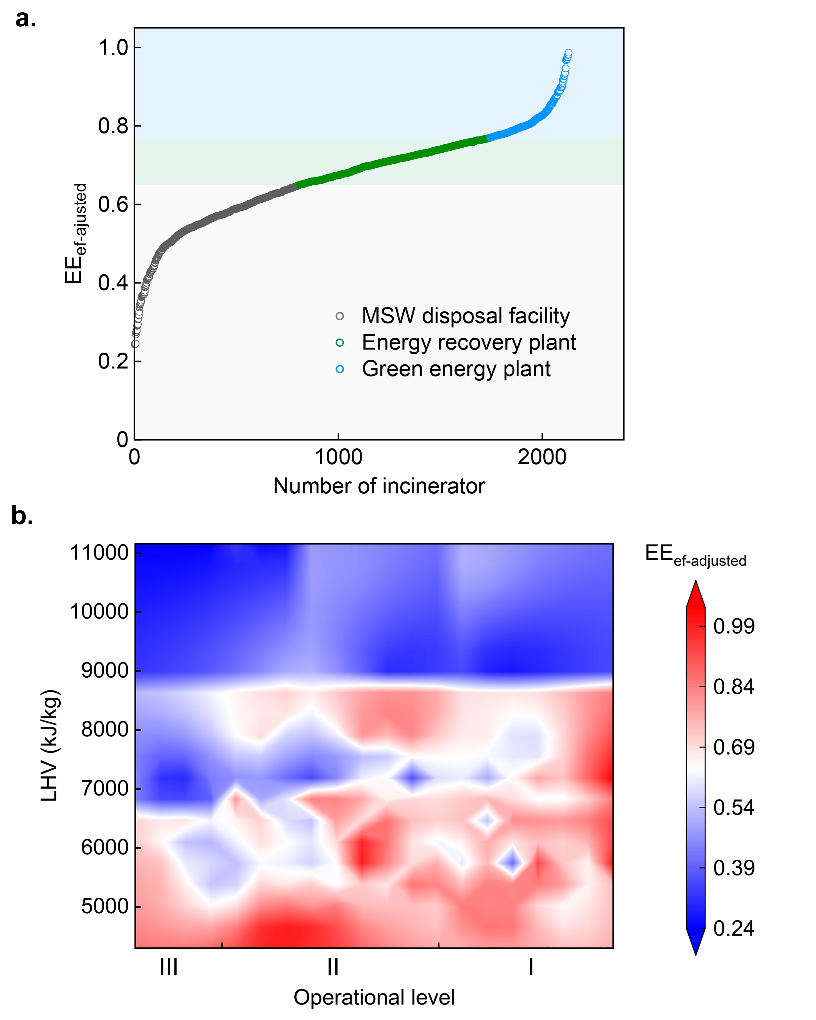 研究量化了物料投入、技术装备、管理运营水平、地域自然环境等因素对能源回收效率的影响,提出了焚烧厂的三级功能分类标准方法,依据其表现可将垃圾焚烧厂划分为处置导向型、能源回收型和绿色能源型三类,为行业精准分类、差异化管理以及出海需求提供了标准化量化依据。