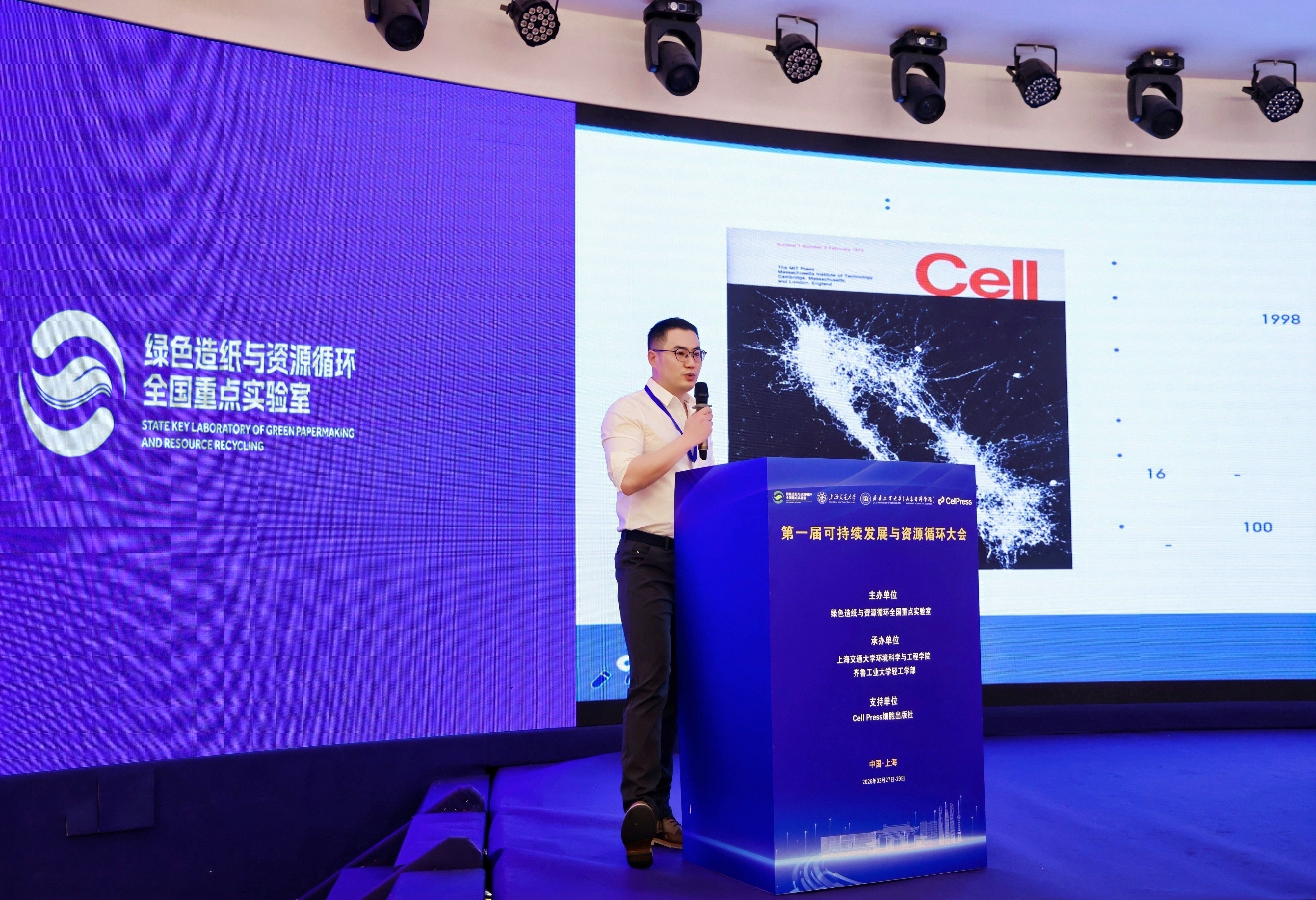 3月27日至29日,2026第一届可持续发展与资源循环大会在上海顺利召开。此次会议由绿色造纸与资源循环全国重点实验室主办,香港AV 、齐鲁工业大学轻工学部共同承办,Cell Press细胞出版社全程支持。中国科学院院士、中国科学院化学研究所研究员赵进才,中国工程院院士、山东省科协教授凌文,中国工程院院士、华东理工大学教授汪华林,中国工程院院士、中国科学院过程工程研究所研究员曹宏斌,国家自然科学基金委化学科学部教授庄乾坤作为特邀嘉宾出席会议。来自80余所高校和研究机构的100余位专家学者参加会议。会议开幕式由香港AV 院长于云江主持。