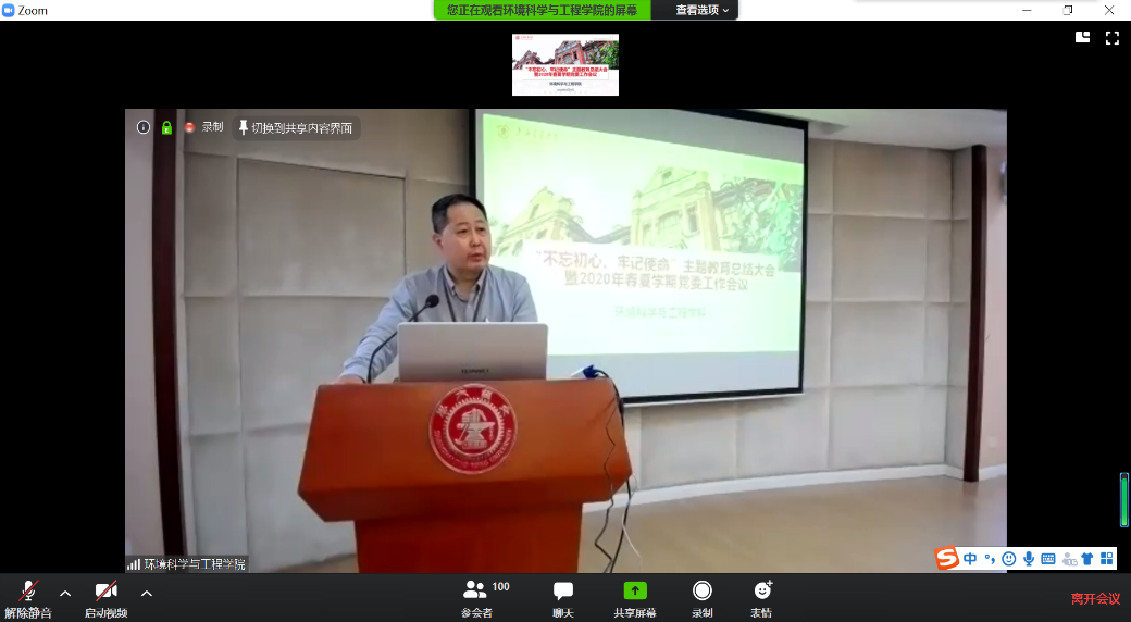 5月7日下午,香港AV 召开“不忘初心、牢记使命”主题教育总结大会。会议主会场在环境楼二楼报告厅和ZOOM线上会议室同步进行,学院党政领导班子、党委委员、全体师生党员等100余人参加了会议。会议由院长耿涌主持。