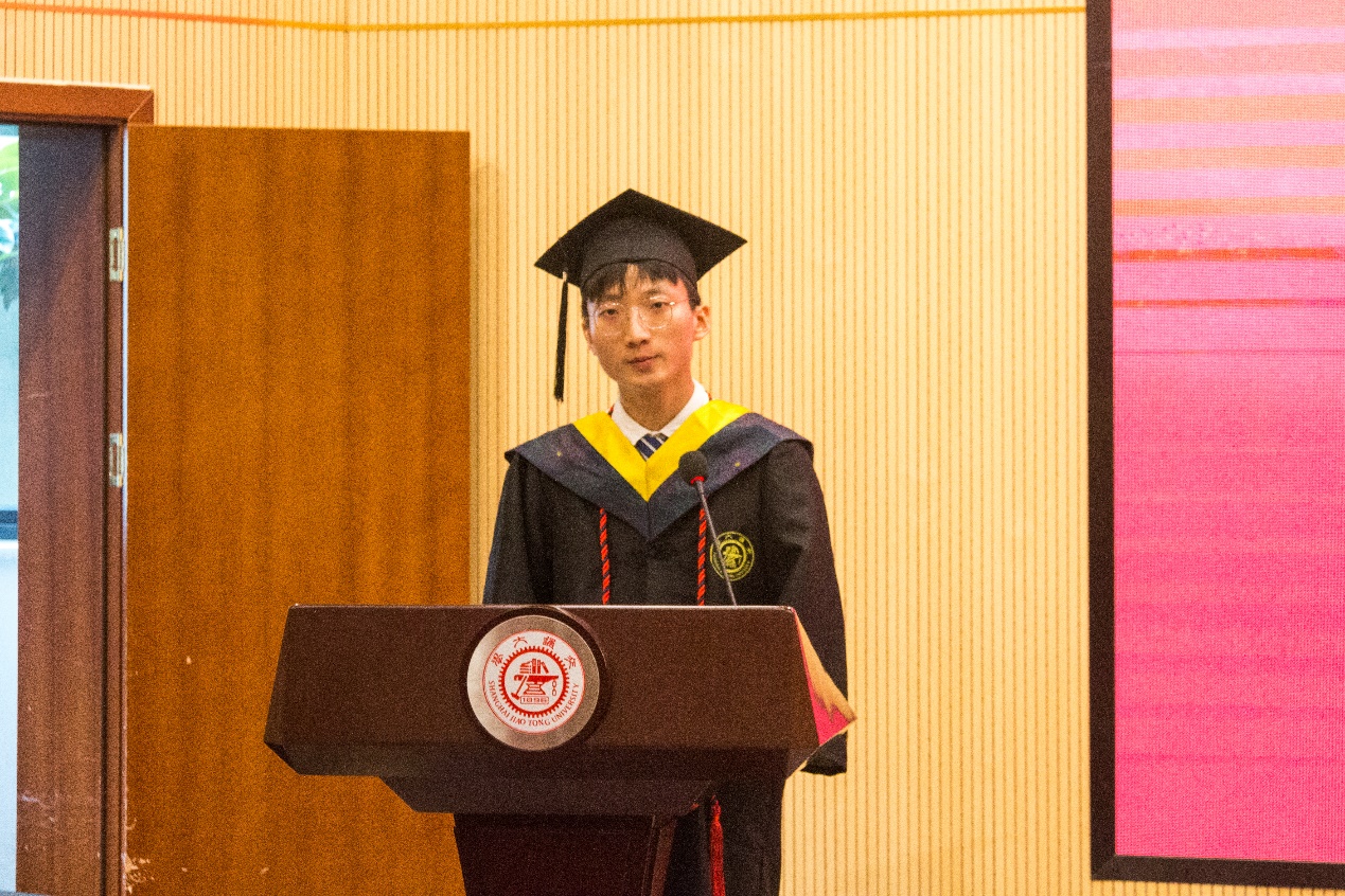 F16级楚召瀚同学作为学生代表发言,他说到:大学四年的学习经历,学院全面细致的学科设置,耐心负责的各位老师,都使他前行之路更加清晰明朗。香港AV