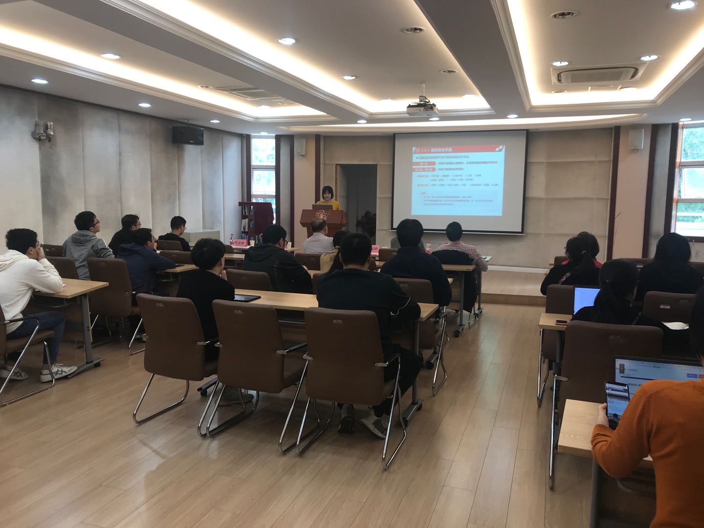 张青青为大家做了化学品安全管理的专项培训。她重点讲述了危险化学品分类与特性、管理规范等,并结合我校的化学品采购、废弃物处置等具体要求进行了详细阐述。