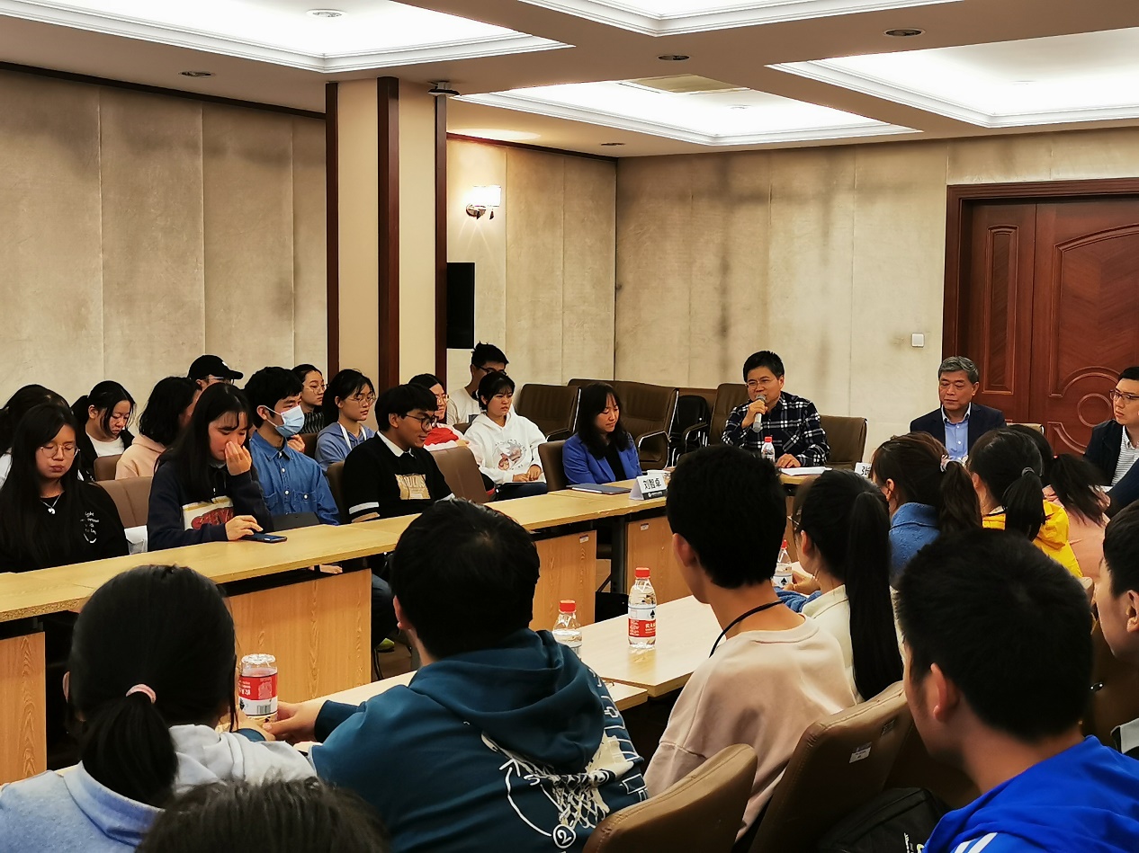 就业情况、本科参与科研的途径、如何自主学习软件、霸王课的学习方法等方面的问题进行了探讨和交流。副院长刘萍、副书记陈哲分别就同学们关心关注的问题进行一一解答。