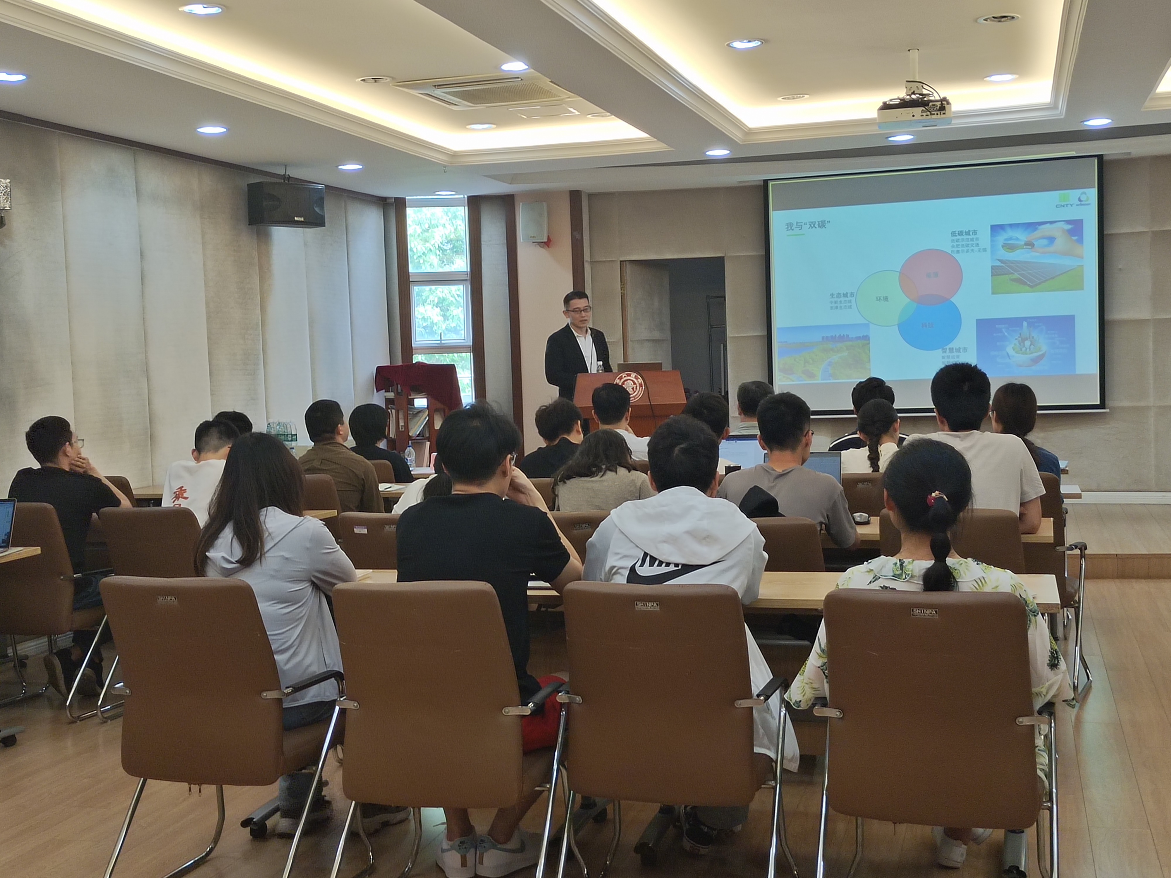 F03级本科校友徐梁就碳达峰、碳中和与再生资源实践进行主题报告。他从自身经历出发,讲述自己对“双碳”的理解,并表示低碳是一个多学科交叉的领域,实现碳达峰、碳中和需要产学研深度融合,推进碳捕集、利用与封存技术,共同构建绿色低碳循环发展体系。同学们展现出极高的参与热情,并表示徐梁学长的分享让自己对专业有了深入的认识,明确了未来的努力方向。