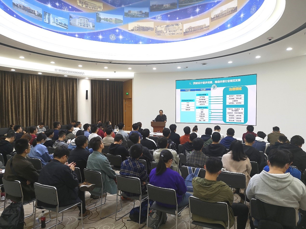 随后,耿涌着眼于新时代环境保护政策与目标,介绍了我国新时代生态文明建设的阶段目标与初步成效,向同学们阐释了习近平总书记在全国生态环境保护大会上强调的生态文明建设六大原则、五大生态文明体系,指明了环境学子在新时代背景下的责任与使命。