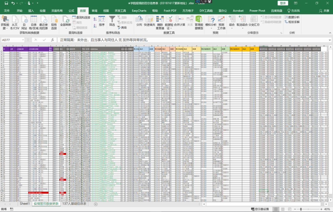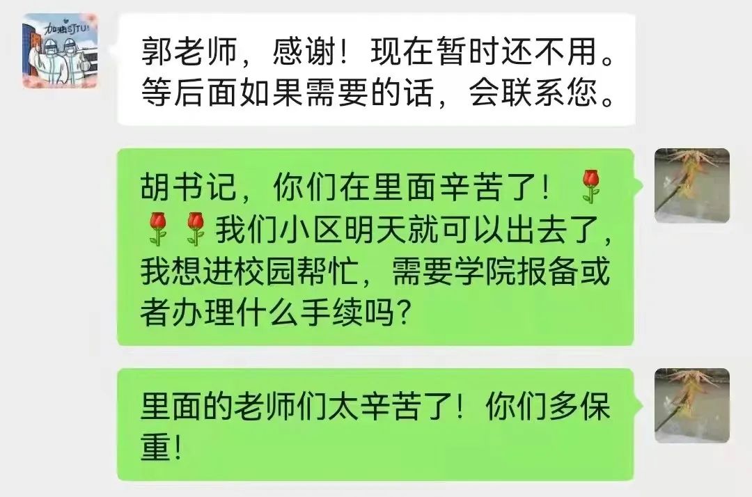 自学校闭环管理第一天起,学院党委领导胡薇薇、张洋等主动扛起政治责任,纷纷入校积极投身到疫情防控战斗中,另有多名思政老师、辅导员、党员骨干等也多次主动请战至一线参与工作。按照《香港AV 疫情防控应急预案》,学院第一时间成立工作专班、建立封控管理响应和信息统计机制,召开党政联席会(扩大)专题会议,研究部署疫情防控重点工作。学院工会结对帮扶,为抗疫教工解后顾之忧。