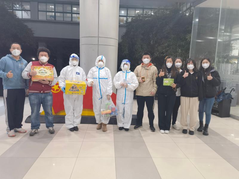 远处云南的大理研究院时刻牵挂母校疫情,紧急调配捐赠风干肉100斤、鲜花饼100袋、茶叶70袋。因为防护管控,物流暂缓,物资的运输过程十分坎坷。大理研究院坚持每日联系物流公司,积极协商解决办法。最终,学院徐臻老师主动请缨,经由自驾顺利将物资运送进校。
