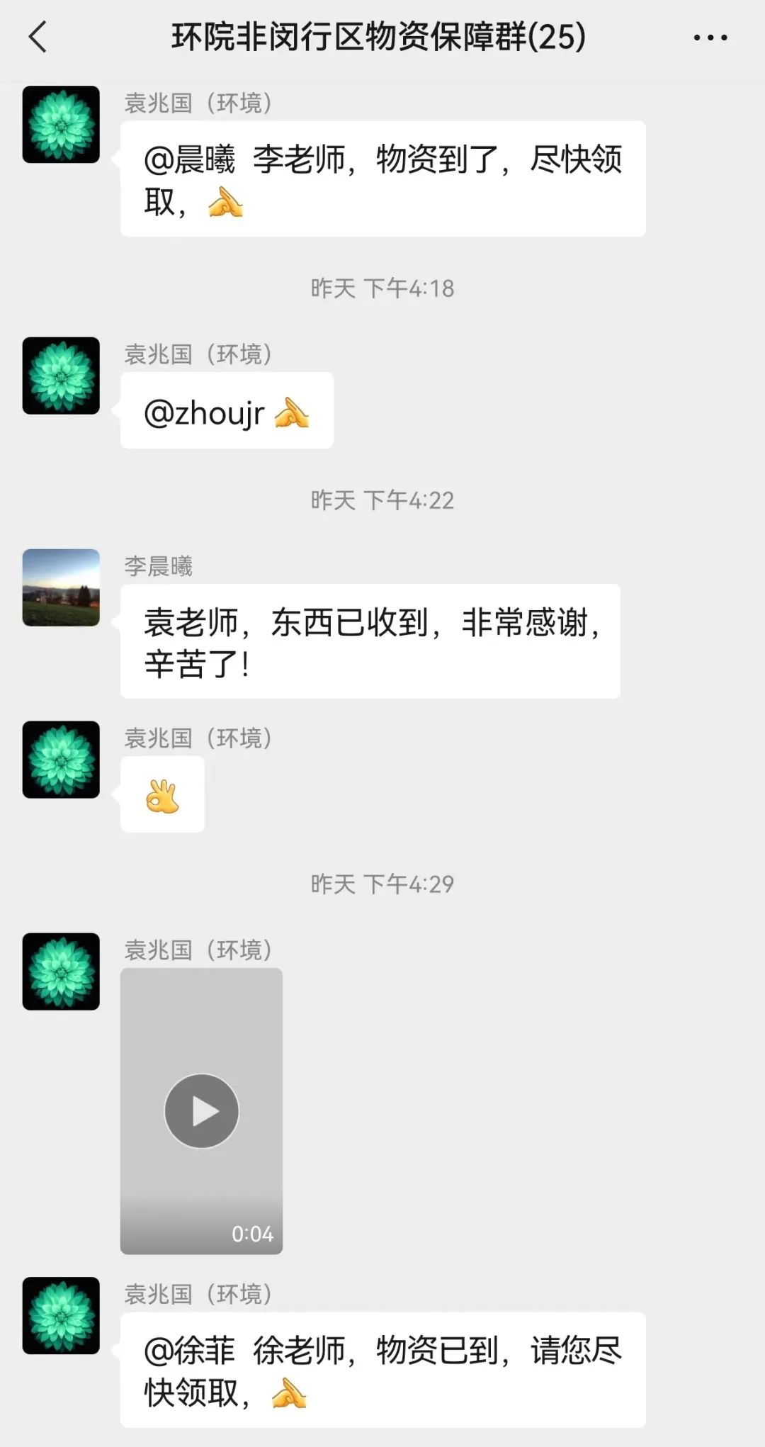 为确保这些珍贵的生活物资能以最快速度送到每一位教职工手中,工会委员们特意组建24小时人工物流客服,对物资运送状态进行实时、定向对接和跟踪,并及时通知大家领取。工会主席何圣兵一直坚守岗位,直到凌晨四点半,终于顺利完成最后一份物资配送。