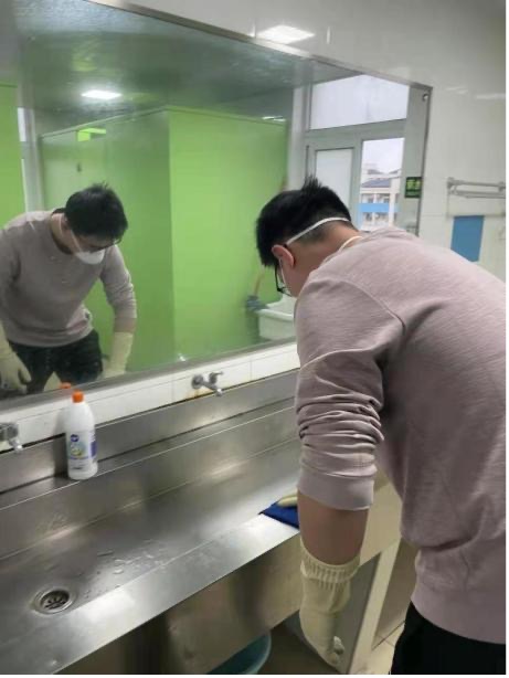 忻恺悦参与宿舍楼消杀志愿工作