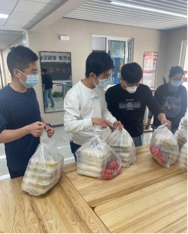 校园闭环管理以来,2021级硕士生党支部成员积极投身疫情防控,争做疫情防控的志愿者。党员周锦阳、侯威、骆泽坤、彭垣钧、徐峰、张帆、谷文、刘蒴果、蔡文略、李瑾泽等,积极分子崔涵博、王俊杰、邹聪、李帅奇、李名阅、穆克迪达斯·库尔班、邓一之、黄子宁、祁程、胡江林、蓝心怡、陈洁蓉、孔令华、王田田等同学奋战在一线,担任层长或楼栋志愿者,参与楼栋日常工作,协助楼栋老师进行物资分发、餐食配送、日常消杀及垃圾回收工作。