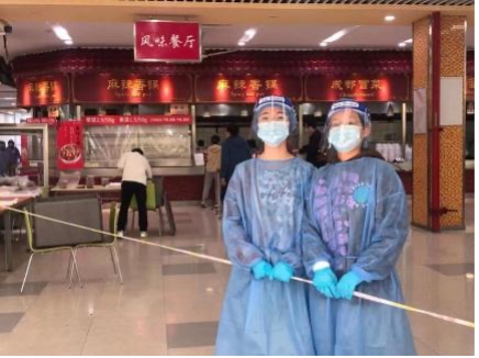 宋宇轩(左一)在第四餐饮大楼做志愿者