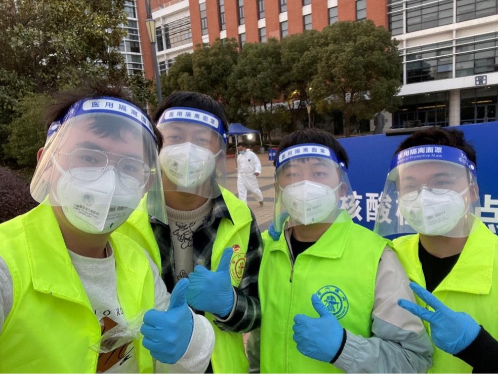 党员周锦阳、侯威、彭垣钧,积极分子李名阅担任密接人群的核酸检测志愿者
