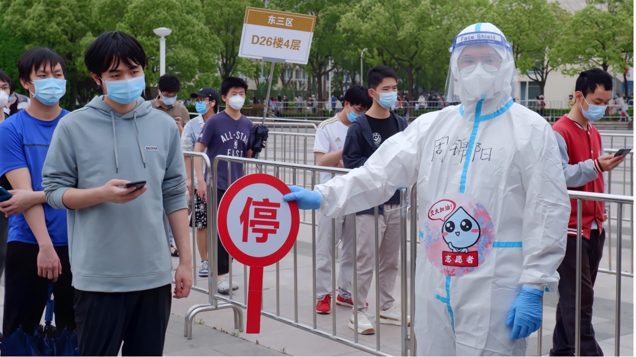 “哪里有需要,哪里就有环院学生志愿者的身影;哪里有困难,哪里就有我们的及时响应。”自4月1日闵行校区宣布全面清零以来,65名香港AV 学生志愿者迅速集结、冲锋在前,“亮身份、见行动、作表率”。这支队伍里有许多党员和入党积极分子,在核酸检测工作中,他们充分发挥专业优势,化身“信息员”、“宣传员”、“战斗员”,用自己的实际行动筑牢战“疫”防线,彰显青春担当!