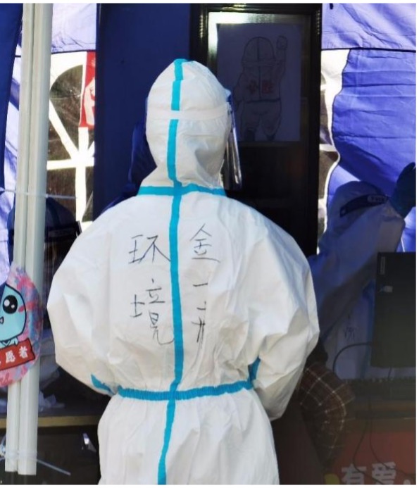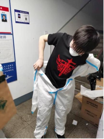 党员陈明作为学生辅导员,封校以后主动向楼栋指导老师“亮明身份”,申请成为楼栋志愿者,协助做好信息的统计,三餐及物资的发放。同时积极参与到线上抗疫志愿活动,及时向在酒店隔离的同学传达防疫政策及相关新闻、讲座安排,辅助老师做好心理疏导、排查并解决问题。在近期核酸检测中,他自发参与采样志愿活动,穿上“大白”,与更多的志愿者共同奋战于抗疫一线。他表示:“相信在大家的共同努力下,没有一个春天不会到来,战疫必胜!”